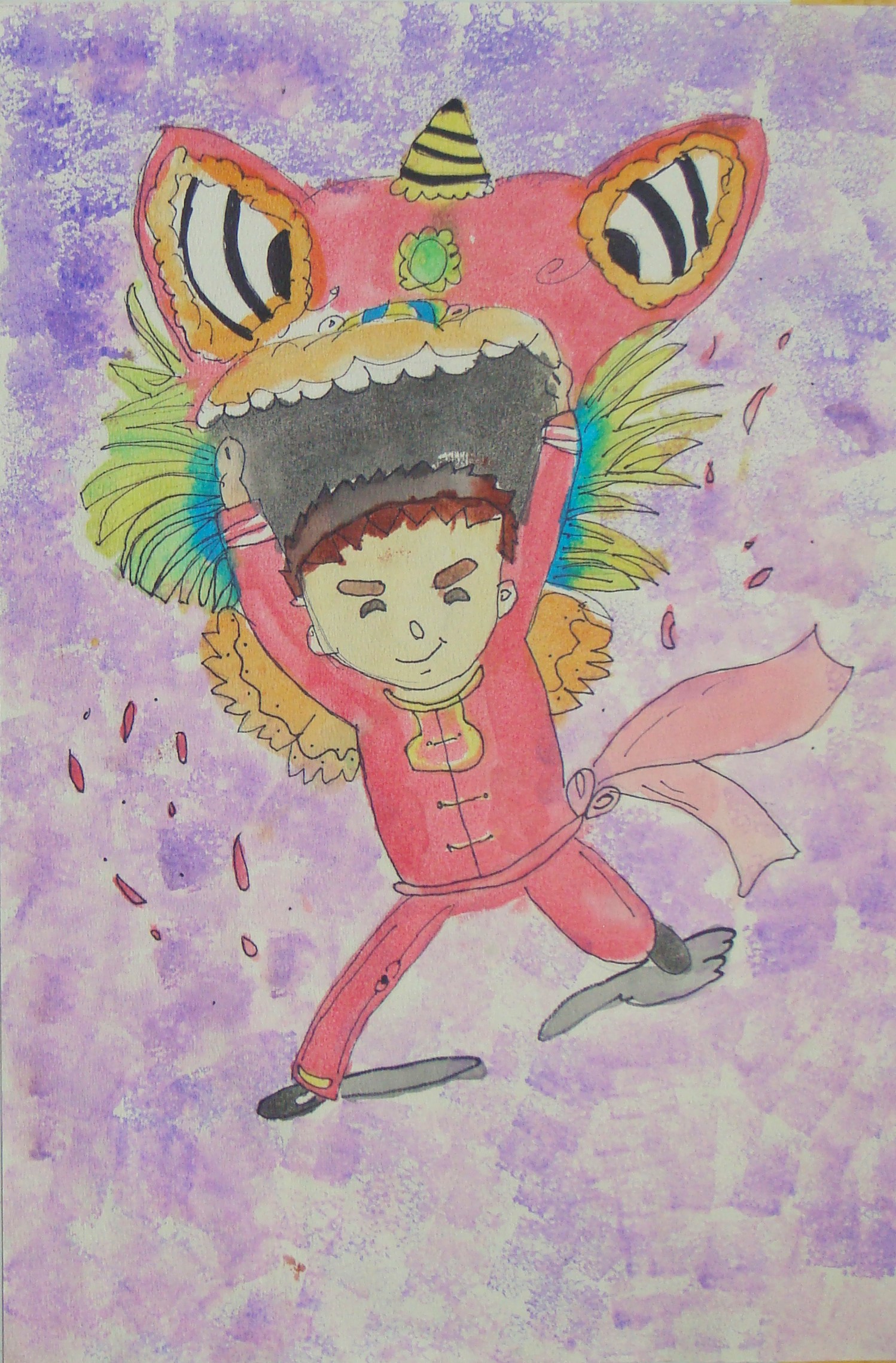 私は、ライオン・ダンサーを描いたらかっこいいだろうなぁと思ったので、この絵を作りました。
