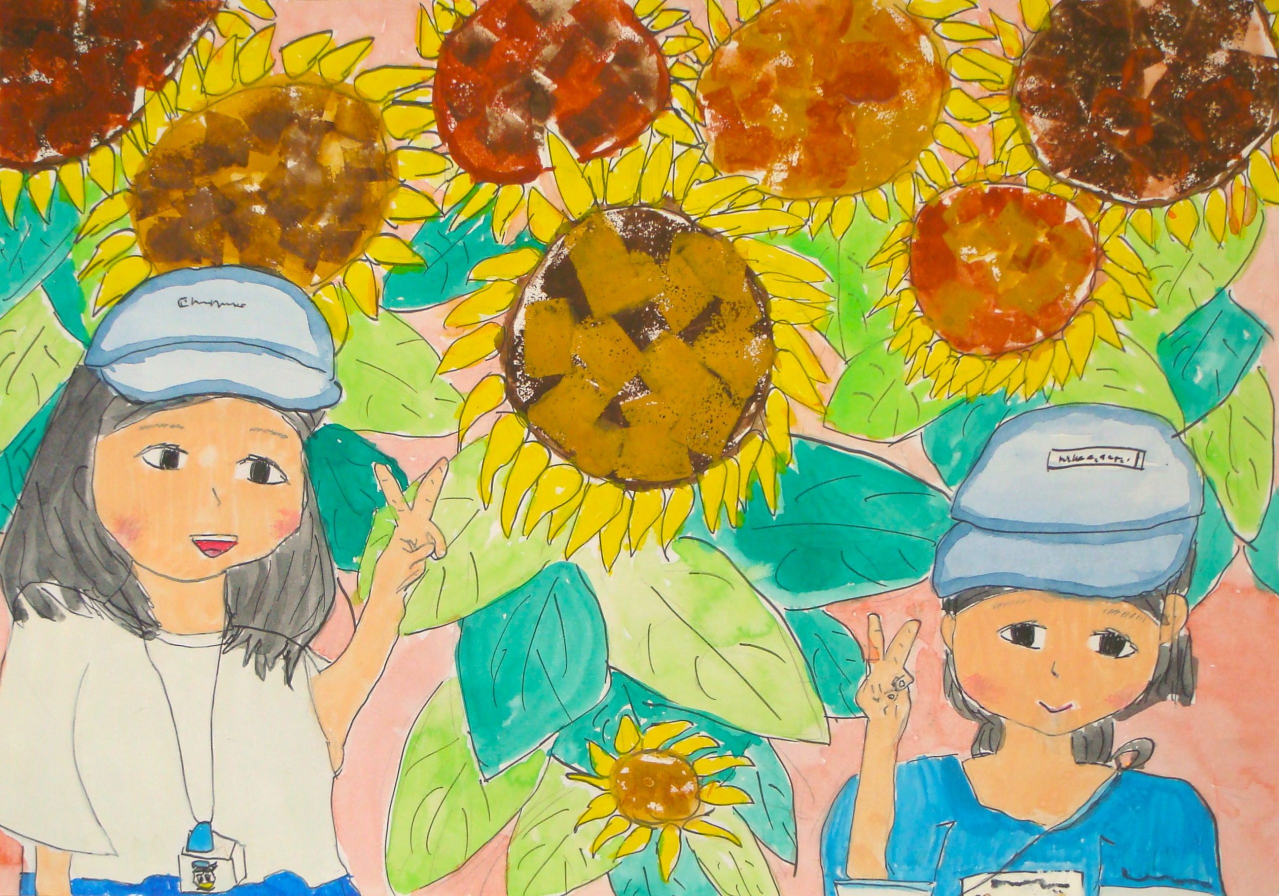どうしてこの作品を作ったかというと、ひまわりがとてもきれいで、夏休みのいい思い出になったからです。
