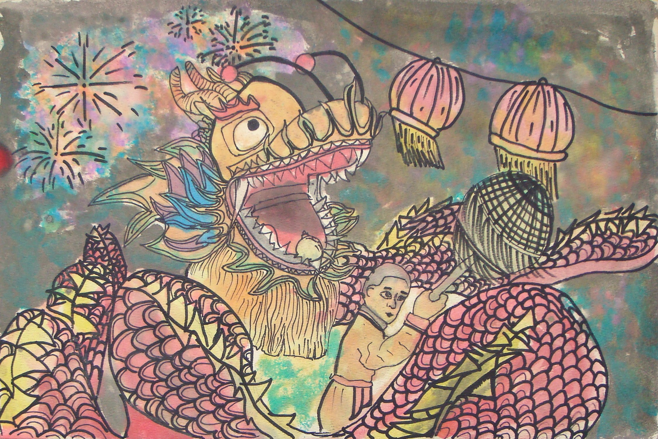 私はドラゴン・ダンスを描きました。それは私にとってチャレンジでした。