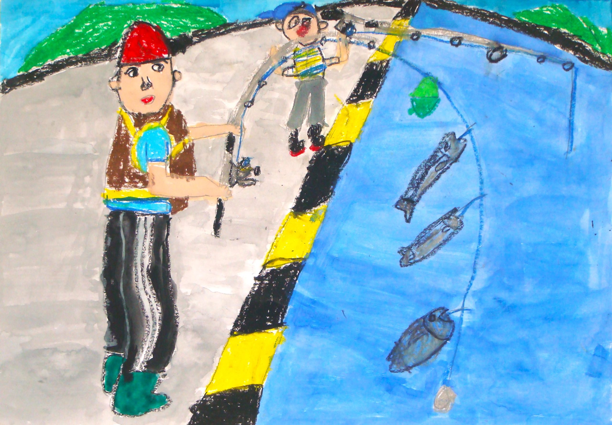 アジを描くのが一番難しかったです。釣り竿は上手に描けました。