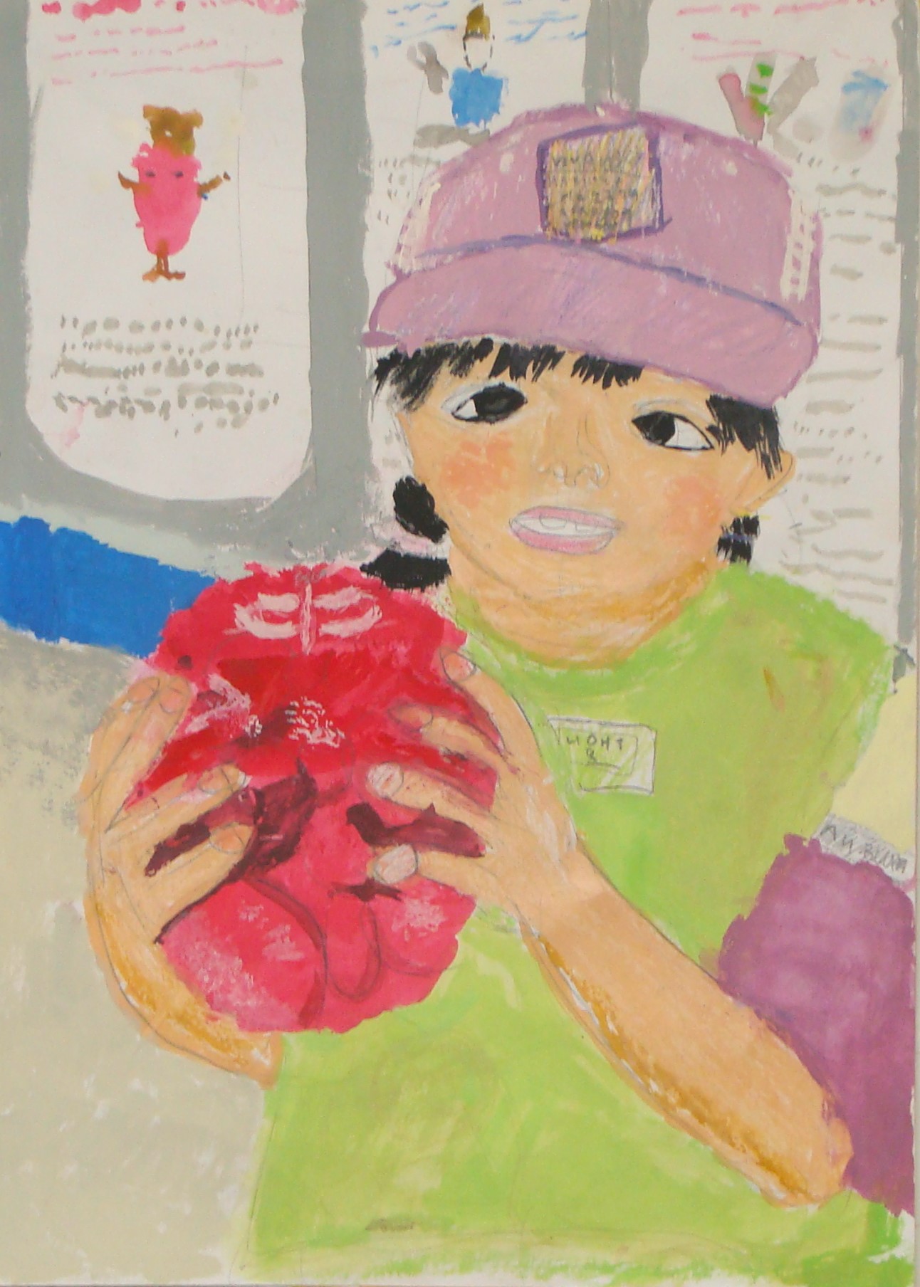 その時の様子を本当の人に見えるように、輪郭や形を丁寧に描きました。色も本物をよく見てぬりました。