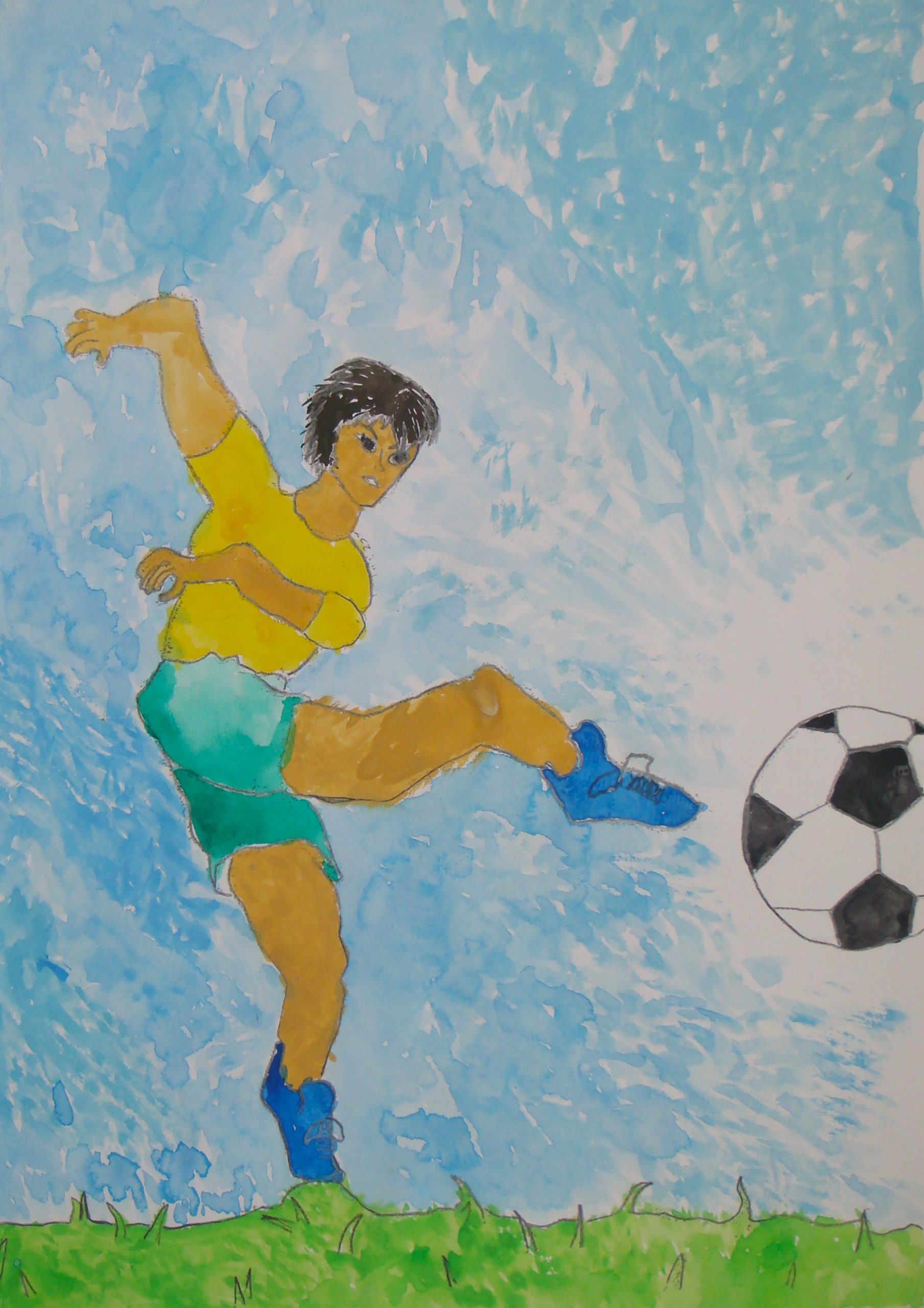 ワールドカップ決勝シュートを思いえがきました。