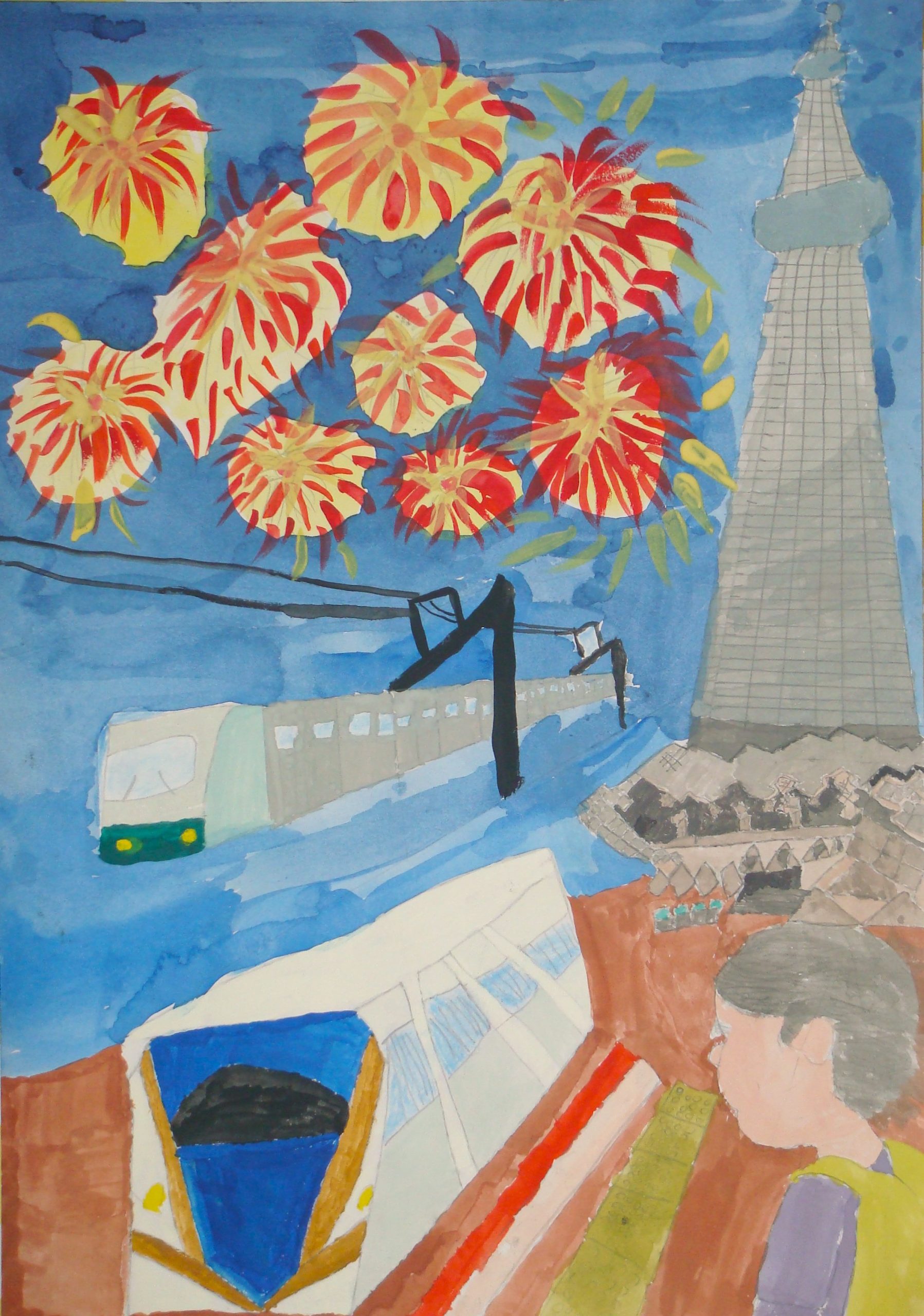 夏休みの楽しかったことを1枚の紙にかいたので、描きながらほかにもあんなことこんなこと思い出してもっとたくさんかきたかった。