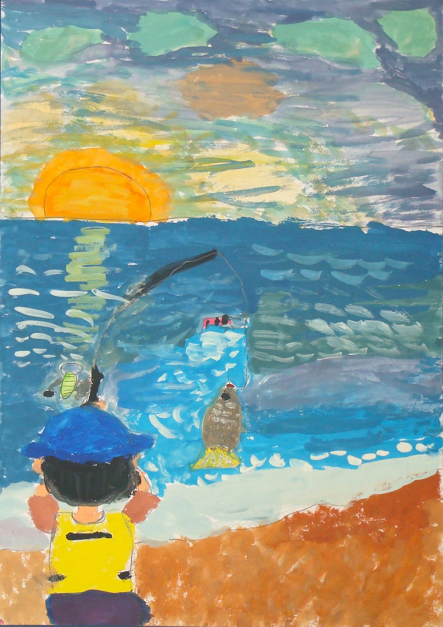 自分でつった魚のうろこも光が当たっているよう工夫しました。