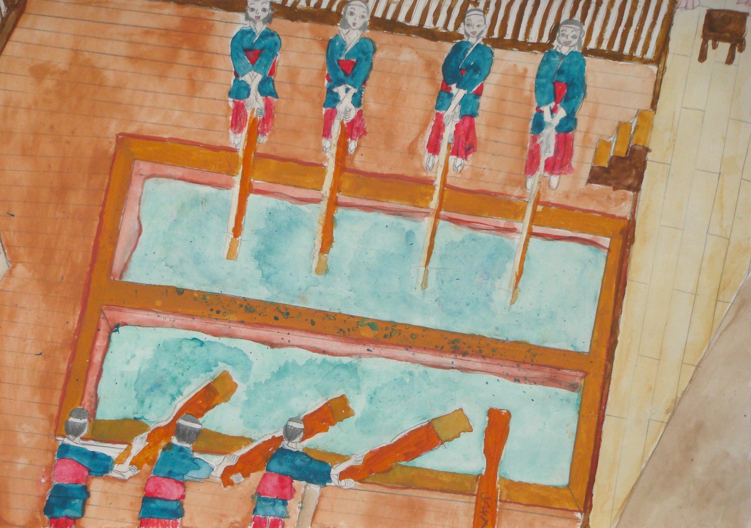 波の音、女の人たちが歌っている音がきこえてくるような作品にできたと思います。