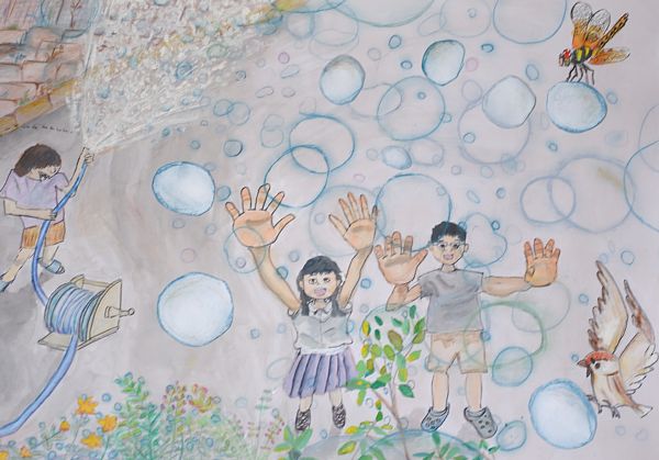 地域の児童の情操教育に尽力したいとの願いからご後援・ご協力賜りました企業・団体・個人の皆さま、審査に当たられた先生方、また多くのボランティアの皆様に心からの感謝を申し上げご挨拶とさせていただきます。どうか児童のおおらかな構図と緻密な彩色、なによりも画面からあふれ出るような創作の喜びをご堪能下さい。