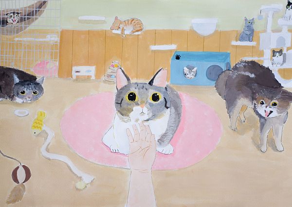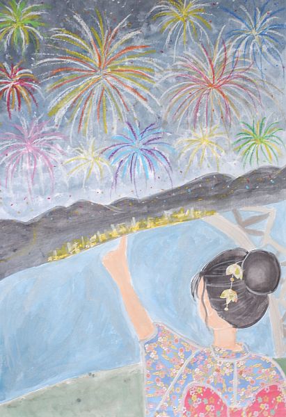 長岡市と姉妹都市の関係にあるハワイ・ホノルル市との児童画による国際交流事業は2016年から始まり、今年度も3名の児童の作品がハワイから特別参加してくれました。日本の子どもたちとは異なる色彩感覚や画題は毎回興味をそそられますし、児童や多くの市民の方々に刺激を与え、心を豊かにしてくれます。