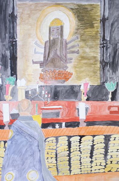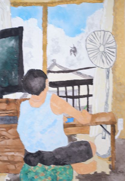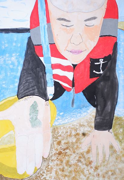 MOA美術館長岡児童作品展は今年度で35回目になります。コロナ禍のため1年お休みをし、その後の2年間はオンラインでの展示のみ行いました。一昨年4年ぶりに実際の展示と表彰式での賞状の授与を行いました。すると、コロナ禍の間に鬱積したエネルギーがまるで爆発したかのように子供たちは素晴らしい作品を次々生み出してくれました。一昨年、長岡会場から全国展に出展した栖吉小学校5年生の大西倫実さんの作品「空に向かって」が「内閣府特命担当大臣賞(こども家庭庁)」を受賞、次いで翌 2024年には、四郎丸小学校3年生の今井莉央さんの作品「紙すき体けんをしているわたし」が全国展で文部科学大臣賞を受賞しました。これらの快挙によって、他の児童の創作意欲が刺激され、絵画を通じて美しいものに迫ろうとする営みから、今年度も素晴らしい作品が応募されてきました。大西さんと今井さんの作品は、熱海のMOA美術館に永久保存されております。